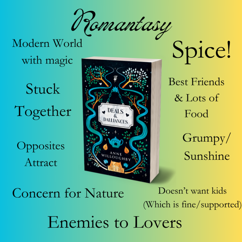 In Deals & Dalliances, you’ll find dual first-person points of view of a magical health environmentalist and a park ranger. Magic, enemies to lovers, and a little more spice.